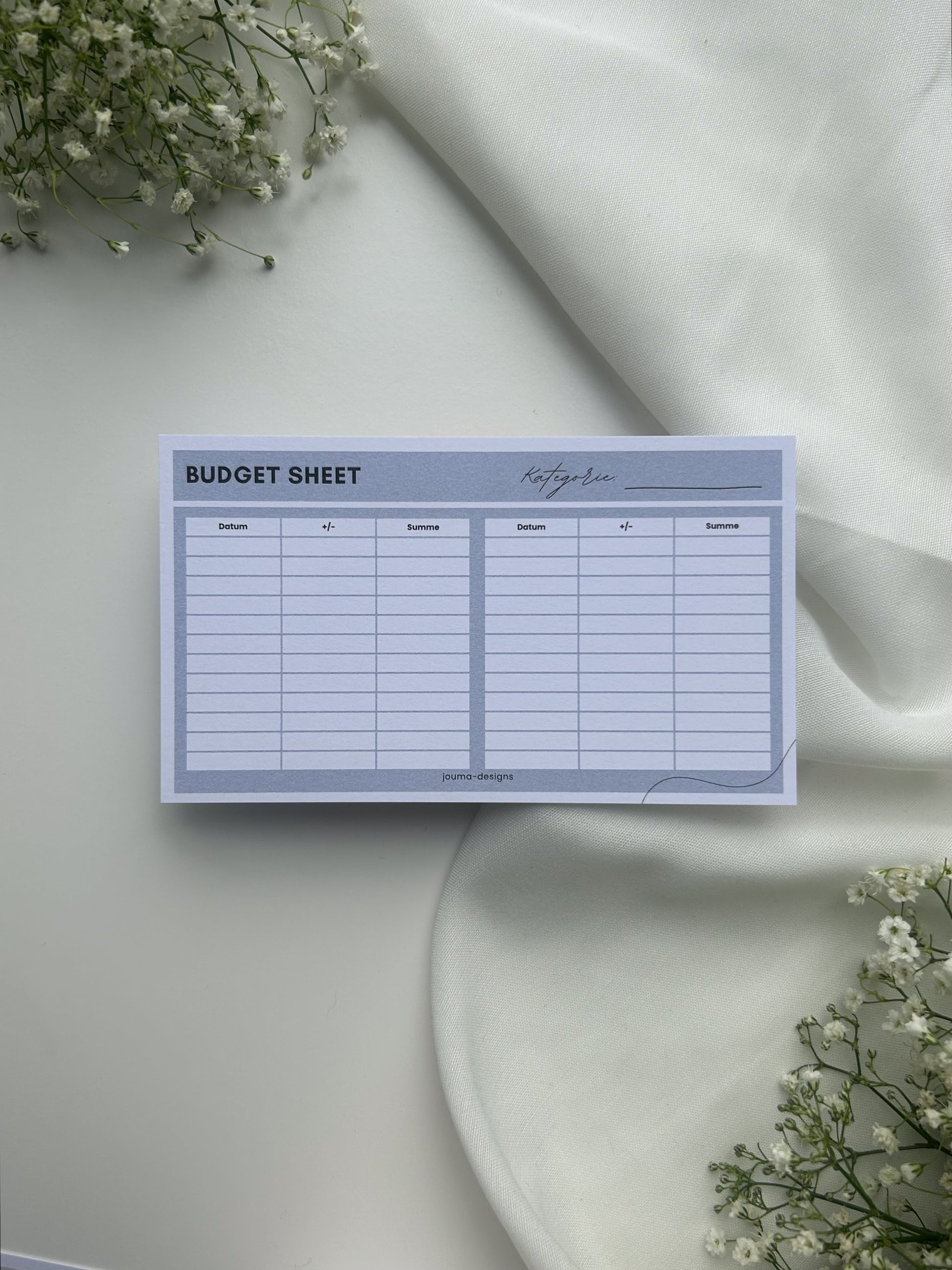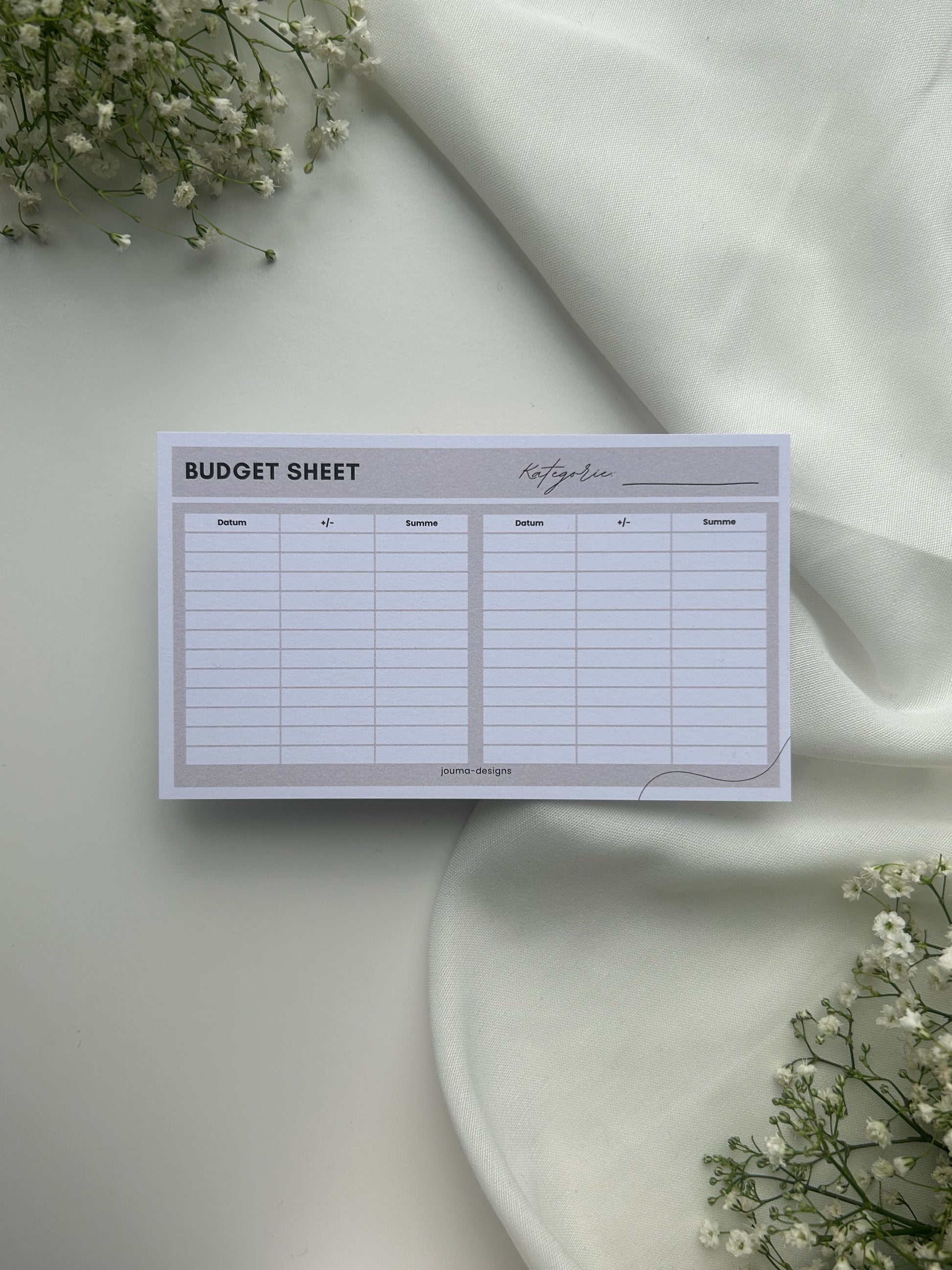 Mit den Budget Sheets behältst du immer den Überblick über deine Finanzen! Die handlichen Vorlagen im Format 8x14cm passen perfekt in die A6-Umschläge deines Binders und ermöglichen dir, deine Einnahmen und Ausgaben übersichtlich zu tracken. Egal ob du deine Ausgaben reduzieren oder dein Sparziel erreichen möchtest, mit den Budget Sheets hast du alles im Blick.