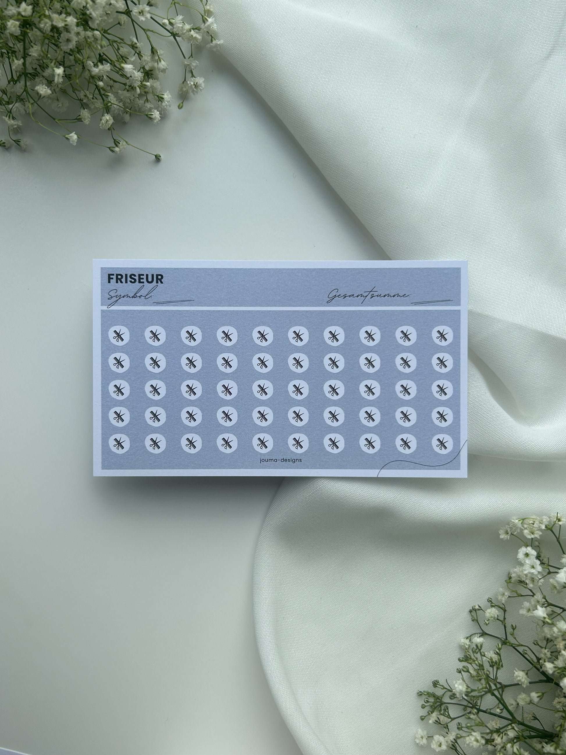 Dank der speziell für diesen Zweck entworfenen Vorlage kannst du auf einfache Weise deine gewünschte Summe für deinen Friseurbesuch zurücklegen. Einfach Wunschsumme festlegen, Betrag pro Symbol berechnen und jeden gesparten Euro mit einem symbolischen Streich auf der Vorlage vermerken.