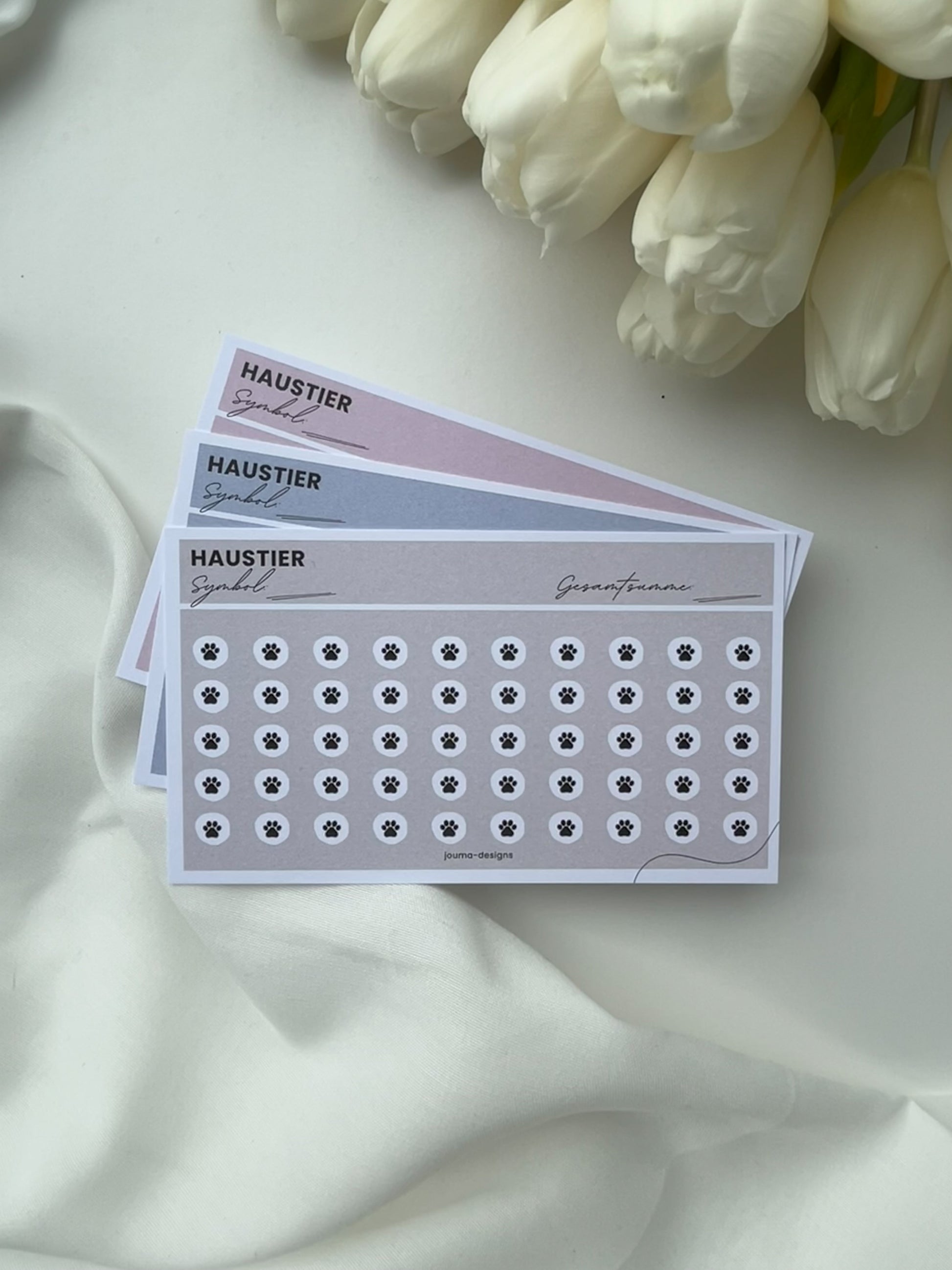 Dank der speziell für diesen Zweck entworfenen Vorlage kannst du auf einfache Weise die gewünschte Summe für dein Haustier zurücklegen. Einfach Wunschsumme festlegen, Betrag pro Symbol berechnen und jeden gesparten Euro mit einem symbolischen Streich auf der Vorlage vermerken.