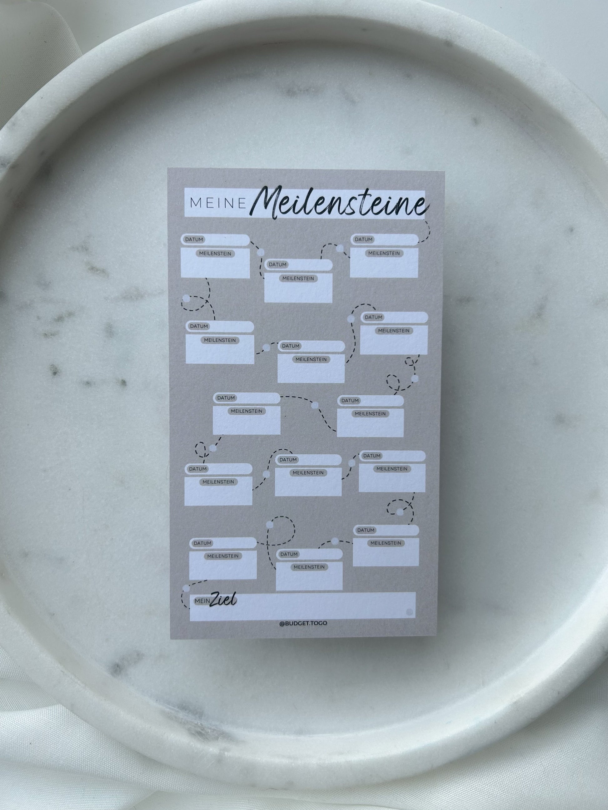Mit der Meilensteinkarte hast du jederzeit den Überblick über deine Fortschritte und kannst deine Ziele gezielt verfolgen. Verabschiede dich von unstrukturierten Wünschen und setze klare und erreichbare Ziele mit unserer innovativen Sparchallenge. Nutze die Kraft der Visualisierung, um motiviert zu bleiben und dich mit jedem erreichten Meilenstein zu belohnen. Erlebe, wie sich deine Sparziele leichter und schneller umsetzen lassen, wenn du sie in kleine Etappen aufteilst und regelmäßig überprüfst. Wage den ersten Schritt zu einer finanziell erfolgreichen Zukunft und hol dir jetzt deine Meilensteinkarte!