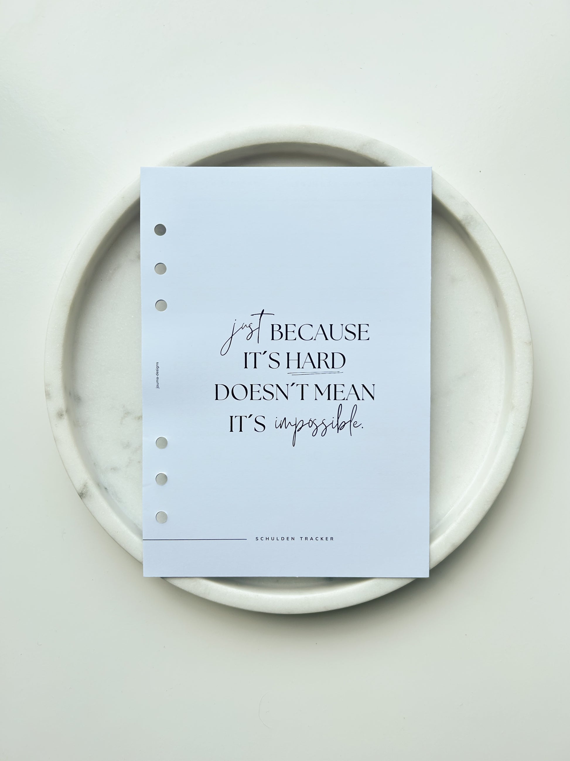 Hast du den Überblick über deine Schulden verloren und weißt nicht, wie du sie am besten tracken sollst? Unser Schuldentracker bietet dir die perfekte Lösung! Mit den praktischen Zusatzeinlagen im DIN-A5-Format und der 6-fach-Lochung kannst du deine Schulden ganz einfach und übersichtlich verwalten.