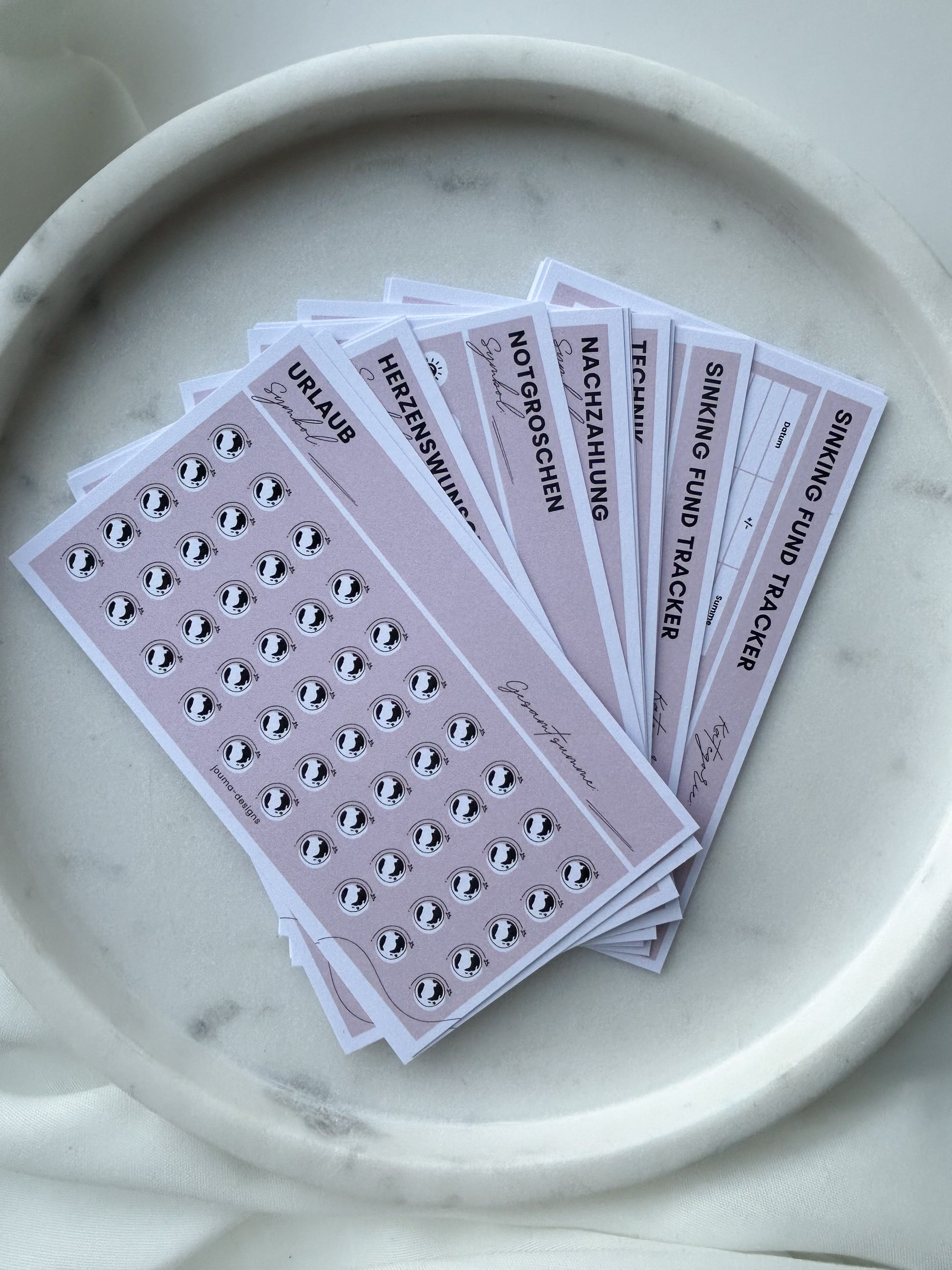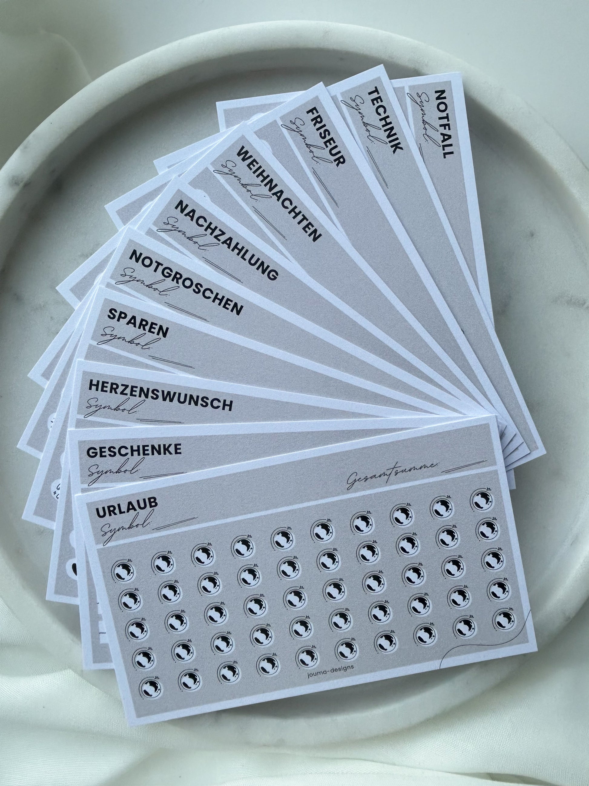 Lieferumfang: 10 x Spartöpfe + 10 x Sinking Fund Tracker